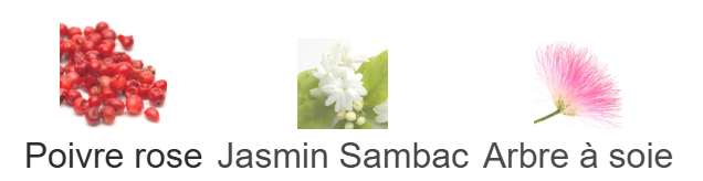 Notes de tête : Poivre rose, Jasmin Sambac, Fleur de soie